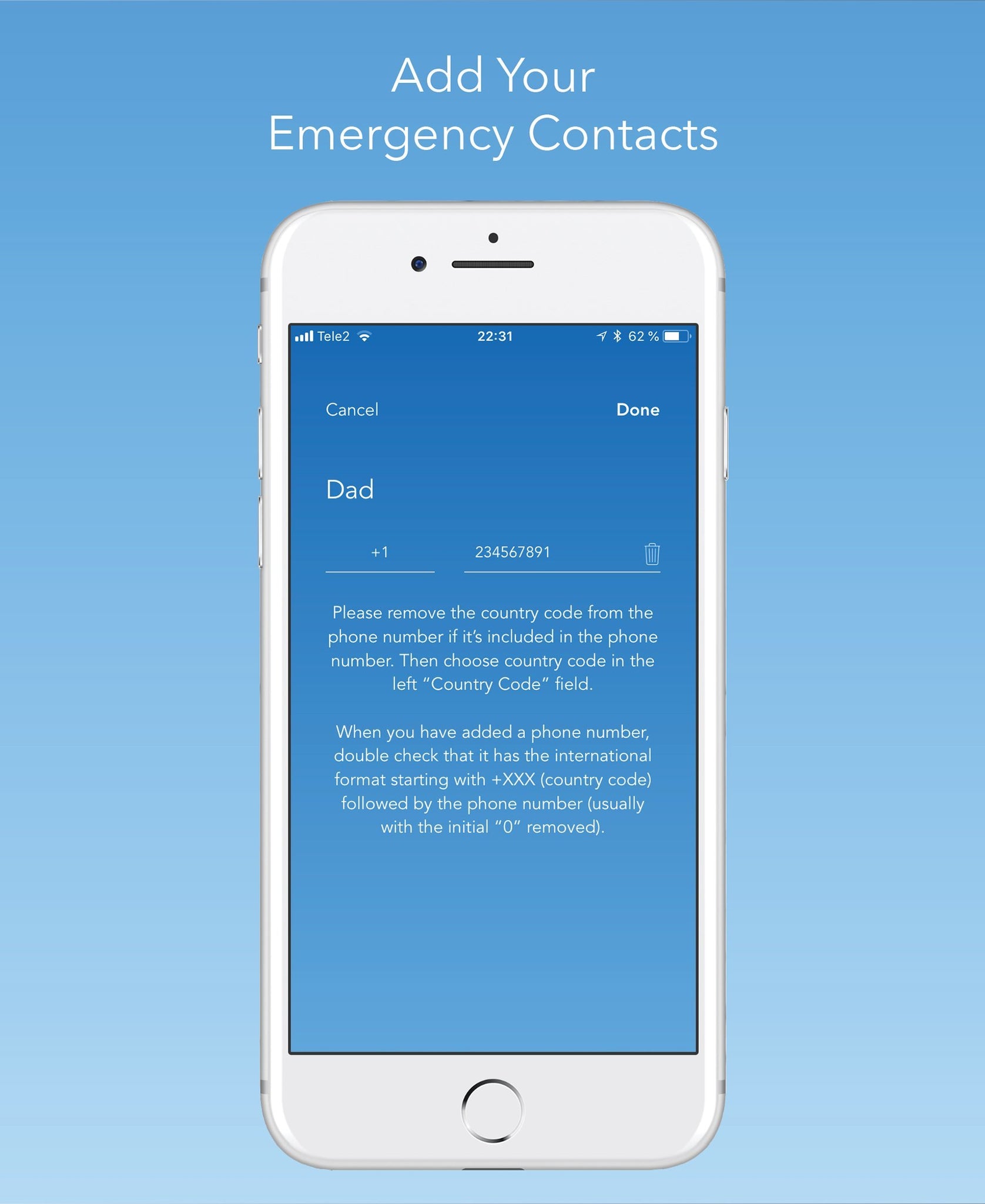 Automatic phone calls to your emergency contacts to inform you that you are in danger, and that they should check their text messages.